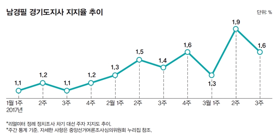 바른정당 남경필 경기도지사도 힘겹게 남태령(서울 관악구와 경기도 과천시를 잇는 고개)을 오르고 있다. 사교육 전면 금지, 모병제 도입, 수도 이전 등 잇따라 파격적인 공약과 정책을 던졌지만 지지율 상승으로 이어지진 못했다. 외려 그의 공약들은 ‘포퓰리즘’이란 비판에 직면했다. 남 지사의 공약을 두고 <한겨레21>이 접촉한 전문가들은 “공약은 기발한 아이디어나 슬로건이 아니다. 사회적 합의와 세밀한 계획이 있어야 한다”고 지적한다. 최근 각종 여론조사에서 그의 지지율은 1%대를 넘지 못하고 있다. ‘지지율 미달’ 탓에 한국갤럽 여론조사 대상에서 빠지는 수모를 겪기도 했다. 이유가 무엇일까. 남 지사가 내건 공약을 점검했다. 특히 누리집과 각종 기자회견, 토론회, 저서에서 밝힌 공약 가운데 논란이 된 것을 살폈다. _편집자