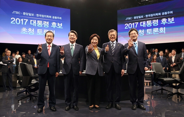 후보들 간에 ‘비방’ 공격이 어떤 식으로 오갔는지 토론회의 몇 대목을 그대로 옮겨와보자. “안철수 후보님, 국민을 적폐 세력이라고 제 이야기를 모독해서 이야기하는 것이야말로 국민을 모독하는 것이다.” 4월19일 KBS 토론에서 문재인 후보가 목소리를 높이자 안철수 후보는 “이런 게 적반하장일 것”이라고 반박했다. 4월25일 JTBC 토론 때 유승민 후보가 계속 81만 개 일자리 공약의 재원을 물고 늘어지자 문재인 후보는 “더 자세한 이야기는 우리 정책본부장하고 토론하는 게 좋을 것 같다”고 답했다. 유 후보를 ‘정책본부장’ 수준으로 비하한 것이다.