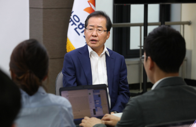 홍준표 전 경남도지사가 대선 패배 한 달 만에 당대표 도전을 선언했다. 6월18일 서울 여의도동 당사에서 당대표 출마 기자회견을 하는 홍 전 지사. 한겨레 강창광 기자