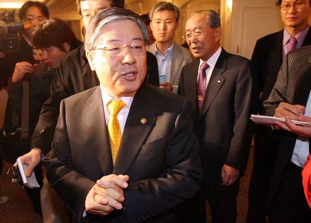 2007년 1월11일 전국경제인연합회 주최 행사에 참석한 김성호 당시 법무장관이 기자들의 질문에 답하고 있다. 청와대사진기자단