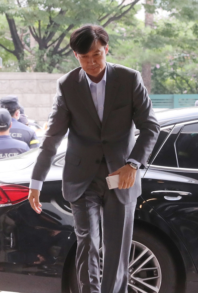 조국 법무부 장관 후보자가 8월27일 오후 서울 종로구 인사청문회 준비단 사무실로 출근하고 있다. 한겨레 신소영 기자