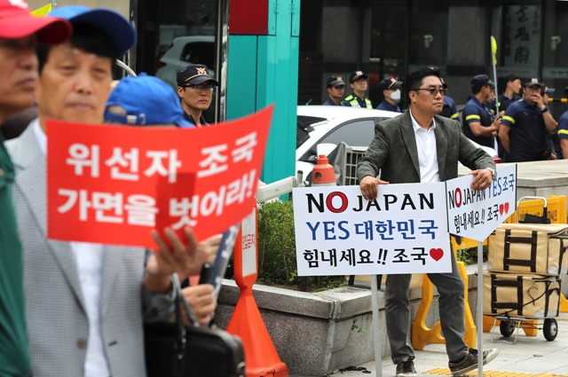8월29일 서울 종로구 인사청문회 준비단 사무실 앞에서 조국 법무부 장관 후보자에 대한 지지·반대 시위가 동시에 열리고 있다. 연합뉴스