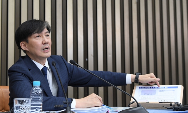 조국 법무부 장관 후보자가 9월2일 국회에서 열린 기자간담회에서 사모펀드 의혹에 대해 해명하고 있다. 공동취재사진