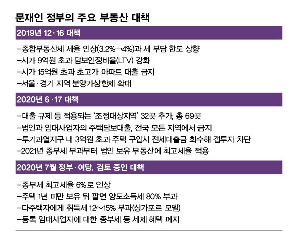 “다주택자들이 보유 주택을 매물로 내놓을 수 있도록 7월 임시국회에서 ‘12·16 대책+6·17 대책+알파(α)’의 종부세법 개정을 추진할 것이다.”(2020년 7월8일 더불어민주당 핵심 관계자)