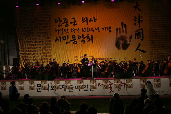 지난해 10월26일은 안중근 의사의 의거 100주년이 되는 날이었습니다. 뜻깊은 날이니만큼 정부 차원에서 기념식을 열기도 했죠. 바로 그 전에 시민이 모여 따로 기념행사를 열었다는 것을 아시나요? 당시 고등학교 3학년이던 저는 시민의 자발적 후원금만으로 서울광장에서 작은 음악회를 준비하고 있다는 소식을 뒤늦게 접했습니다. 그동안 정부 및 관변단체에서 주도해온 안중근 의사 기념식과는 달리 이번에는 시민이 뭉쳐 기념행사를 열자는 취지라고 하더군요. 인터넷으로 관련 소식을 접하자마자 저도 뭔가 기여하고 싶다는 생각에 휩싸였습니다. 저는 역사 과목도, 안중근 의사도 좋아하는 학생이었거든요.