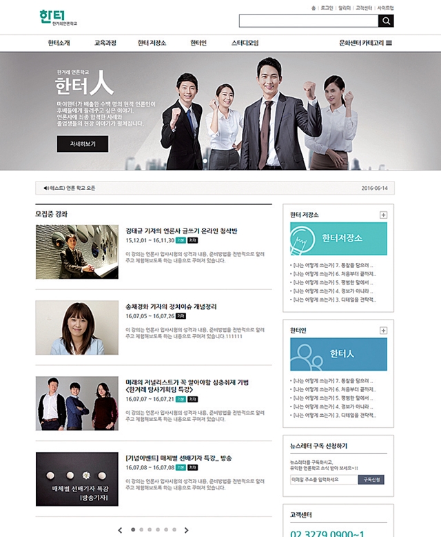 한터는 자체 홈페이지를 언론사 입사시험 정보의 허브로 가꿀 계획도 있다. 강사들이 글쓰기 전략과 방법 및 자기소개서·면접 관련 정보를 제공하며, 매 시기 논술 주제와 작문 제시어, 도서·사이트를 추천한다. 예비 언론인이 한터 출신 현직 언론인들을 인터뷰한 내용을 통해 입사 준비 노하우와 현직 경험 등을 공유하는 코너도 마련할 예정이다.