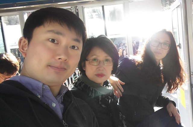 신수현(34·오른쪽)씨는 사무실에서 전화를 받았다. 다행히(!) “일은 마쳤는데 잠시 머무는 중”이라고 했다.