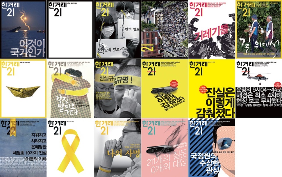 2014년 4월16일 참사 직후 발행된 제1008호부터 이번 제1145호까지 지난 1천 일 동안 <한겨레21>은 모두 136차례 정기 발행됐다. 그 가운데 16차례 발행본에서 세월호 참사를 표지 기사로 다뤘다. 표지 기사를 포함해 참사 관련 기사를 게재한 것은 82차례다. 칼럼 등을 제하고, 본격적으로 참사를 다룬 기사만 모두 282건이다. 그 밖에도 참사 100일, 1주기, 2주기, 그리고 이번 1천 일을 맞아 호외 특별판을 만들었다.