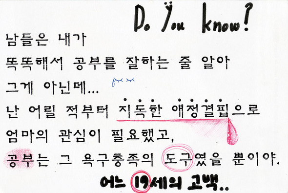 페이스북 0트위터 0공유네이버블로그카카오스토리카카오톡 공유하기스크랩프린트크게 작게[비밀엽서] 어느 19세의 고백 한국판 ‘비밀엽서 프로젝트’에 초대합니다 ◎ 엽서 보낼 주소 서울시 마포구 공덕동 116-25 한겨레신문사 4층 <한겨레21> ‘비밀엽서’ 담당자 앞 (우)121-750 한겨레와 함께 걸어주세요섬세하게 세상을 보고 용기있게 기사를 쓰겠습니다.후원하기후원제 소개좋은 언론을 향한 동행,한겨레를 후원해 주세요한겨레는 독자의 신뢰를 바탕으로 취재하고 보도합니다.후원하기후원제 소개당신의 가치를 후원으로 얹어주세요평화를 갈망하는 마음, 평등을 지향하는 마음,환경을 염려하는 마음...후원하기후원제 소개����한국판 ‘비밀엽서 프로젝트’[비밀엽서] 내 나이 19, 그의 나이 20[비밀엽서] 웃고 싶지 않아요[비밀엽서] 힘든걸요한겨레21 인기기사제 1587호20251031차례보기지난호보기낱권구입구독신청한겨레 인기기사