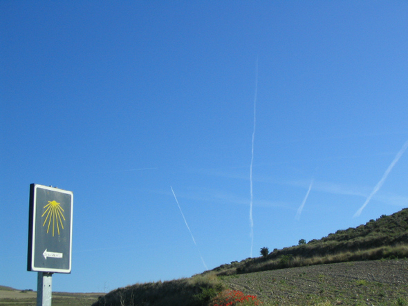 산티아고 길을 나타내는 표시. 조개는 순례자의 상징이다. 한겨레 김소민 기자