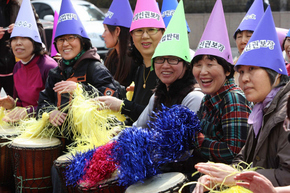 여성들 ‘101번째 생일’ 101번째 세계 여성의 날을 맞은 8일 오후 한국여성단체연합 등 177개 여성·시민·노동단체들이 서울 청계광장에서 함께 연 한국여성대회. 한겨레 김태형 기자