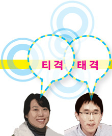 전우진 영포회 이야기를 다룬 특집 ‘나는 왕 비서관이로소이다’ 기사로 넘어갈까요? 박지숙 ‘왕 비서관’ 박영준 국무차장이 나랏일을 집안일처럼 다루는 거 같다는 생각에 어이가 없었죠. 전우진 신문에서는 중간중간 조각내 읽다 보니 전체적인 맥락을 파악하는 게 힘들었는데, 여기서 정리해주는 듯해서 좋았어요. 박지숙 공직윤리지원관실이 한마디로 촛불 배후를 찾기 위해, ‘친노’의 약점을 잡으려 만든 곳이라는 생각을 했어요. 전우진 자리 나눠먹은 거나, 나눠먹고 감투 쓰고 하는 짓이나 제대로 하는 게 없군요. 박지숙 다음 얘기로 넘어가볼까요? 저는 기획 ‘더우니까 여름이다 물리니까 사람이다’가 재밌었는데, ‘그래서?’라는 의문이 들었어요. 에어컨이 지구온난화를 유발하지만 그만큼 날씨도 점점 더워지니 솔직히 에어컨을 안 틀 수가 없잖아요. 좀 공감이 안 갔어요. 전우진 생각을 환기시켰다는 점에서 의미 있는 기사였어요. 에어컨을 덜 쓰는 환경을 만드는 방법을 제시한 기사였다면 더 좋았겠어요. 박지숙 레드 기획으로 구로사와 아키라 감독 탄생 100주년을 다룬 기사가 참 좋았어요. 구로사와가 유명한 것도 알고 <라쇼몽>도 봤는데, 그에 대해 자세히 뭔가를 읽은 건 없거든요. 영화평론가가 얘길 해서 더 전문적이었어요. 전우진 아쉬운 게 있다면 저처럼 완전 문외한이 보기엔 조금 거리감이 있었다는 점이죠. <라쇼몽>이 무슨 내용인지도 모르겠고. 박지숙 워낙 유명해서 설명을 안 했나 봐요. 간략하게라도 상자 기사로 다뤘다면 좋았겠어요. ‘고명섭 기자가 추천하는 인문서 16선’은 어떠셨어요? 그동안 보니까, 여름마다 나오더라고요. 근데 어려운 책이 많아서 다 찾아 읽기는 약간 부담스러워요. ㅋㅋ 전우진 저는 <한겨레21> 출판 면에 소개된 책을 많이 사보는 편이에요. 시기도 ‘방구석에 처박혀서’ 책 읽기 좋은 여름이고, 적절했어요. 박지숙 여기 실린 <정의란 무엇인가>가 요즘 베스트셀러던데, 읽어봐야겠어요. 오늘은 이 정도로 할까요? 전우진 네, 이거 티격태격인데, 오늘도 오순도순이네요. 그럼 다음에 봬요.^^