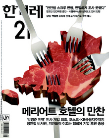 “다른 이슈에 묻혀버린 한국방송 파업” 김경민: 안녕하세요? 819호 표지이야기 ‘메리어트 모임의 폭식 스캔들’부터 얘기할까요? 전 사실 무슨 소린지 잘 모르겠다는 생각으로 읽기 시작했는데, 분석이 잘돼 있어서 이해가 됐어요. 김대훈: 용의 꼬리가 아닌 몸통을 보게 된 느낌이랄까? 김경민: 표지에 고기로 형상화된 대한민국 그림도 인상 깊었어요. 거대권력을 가진 자가 어떻게 나라를 주무르는지 잘 드러났죠. 김대훈: 그들이 정치인이나 공무원이 아닌 개인으로서 자신의 이득을 위해 움직였다고 볼 수밖에 없더라고요. 품위도 교양도 없는 이권다툼.
