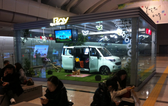 서울지하철 9호선(메트로 9) 고속터미널역에 자동차가 전시돼 있어요. 차를 어떻게 지하철역 안으로 들어오게 했는지, 설마 지하철 내에 부품을 가져가 조립한 것인지(?) 궁금합니다.(독자 이화님)