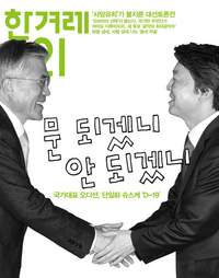 ‘죽은 개는 아무도 차지 않는다’는 말이 있다. 정치에서 최악의 패배는 상대에게 지는 게 아니라 대중의 무관심이다. 문재인과 안철수 후보의 단일화 이벤트는 그런 측면에서 흥행에는 성공한 듯하다. 표지이야기 ‘국가대표 오디션 단일화 슈스케 D-19’를 통해 긴장감이 흐르는 단일화 과정의 내막을 알 수 있었다. 그러나 중요한 것은 민생 파탄의 주범이자, 경제민주화마저 내다버리며 거짓 공약임을 시인한 수구보수 세력을 상대로 승리를 거두는 일이다. 서민들의 염원을 저버리지 않을 것이라 믿는다.