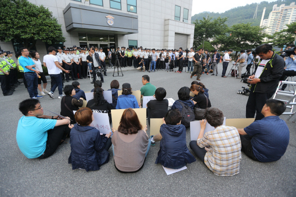 재판이 끝난 뒤에도 희생자 가족은 광주지법을 떠나지 못했다. 광주지검 구치감 앞에서 피고인들이 타고 갈 호송버스를 가로막았다. “(피고인들이) 잘못한 게 없으면 떳떳하면 유족들 앞으로 나와라”고 요구했다. 경찰들이 가로막고 서자 “도대체 누구를 보호하는 것이냐”고 소리쳤다. 가족들은 ‘아이들의 영혼이 보고 있다’ ‘판사님의 현명한 재판을 믿는다’ 등을 적은 손팻말을 들고 법원에 앉아 시위했다. 피해자 쪽 변호사들이 중재해 “내 새끼 살려내라” 등 구호를 외치며 1시간30분 만에 농성을 풀었다. 오후 7시40분 가족들이 버스 3대에 나눠 타고 안산을 향해 떠난 뒤 5분도 지나지 않아 호송버스 4대가 광주지법을 빠져나갔다. 제2회 공판준비기일은 6월17일 오전 10시부터 오후 6시까지 열린다.