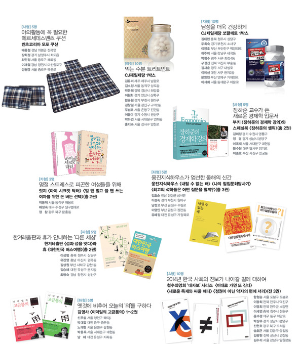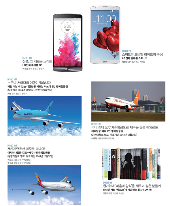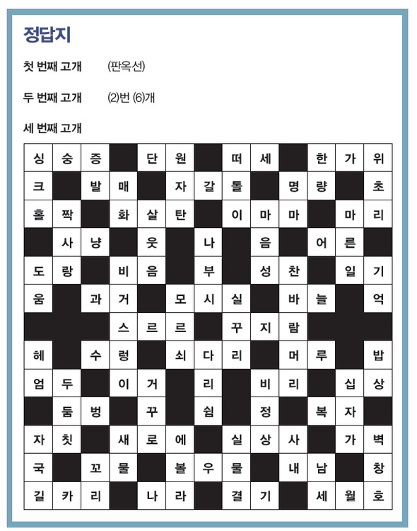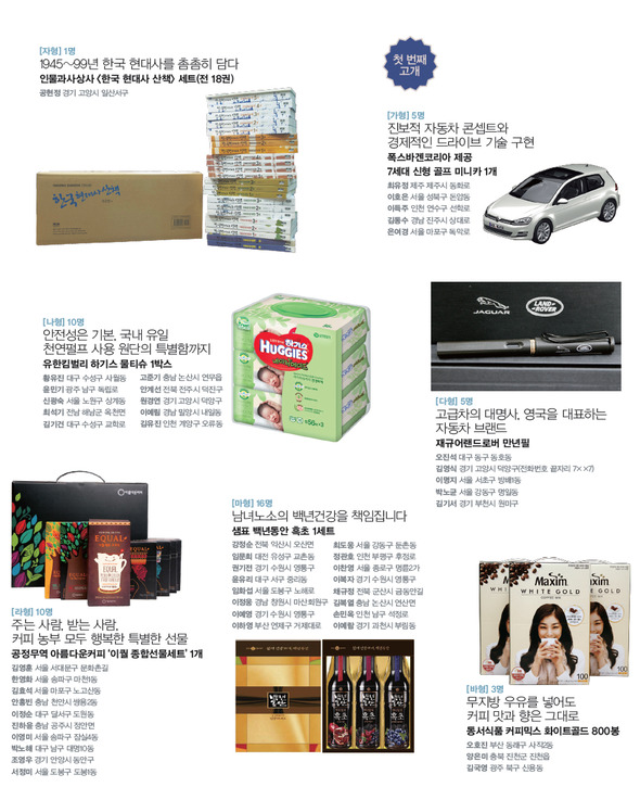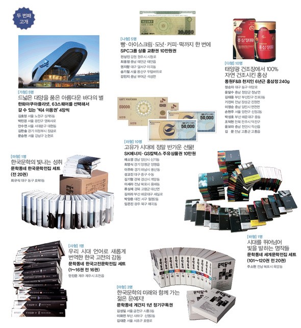 안타깝게도 응모해주신 모든 분들께 원하는 상품을 드리지는 못했습니다. 워낙 정성 가득한 엽서를 보내셔서 꼭 뽑아드리고 싶었지만 정답을 맞히지 못해 상품을 드리지 못한 분들도 있었습니다. 특히 이번에는 두 번째 고개가 어려웠나봅니다. 정답(2번 6개) 대신 오답(2번 7개)을 쓰신 분이 유독 많았습니다. 그래도 어렵다고 원성이 자자하던 ‘멘사 퀴즈’가 빠져 상대적으로 쉽게 문제를 풀었다는 의견도 많이 보내주셨습니다. 엄청난 경쟁력을 뚫고 당첨되신 분들 모두 축하드립니다.