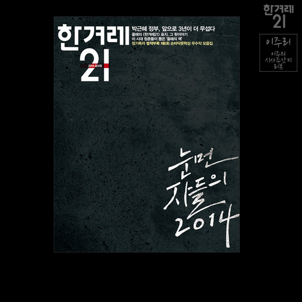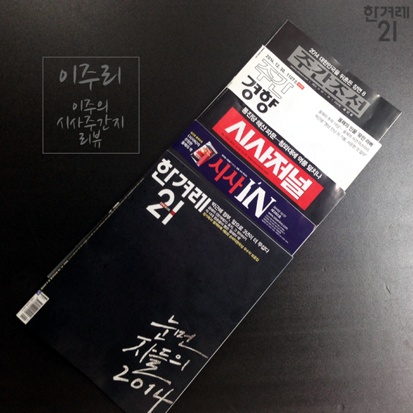 자, 시사주간지는 이렇게 올 한해를 마무리 했습니다. 그리고 이번 주에 이미 2015년 신년호의 취재를 시작했습니다. 한 주 빠른 삶을 살고 있는 <한겨레21>을 포함한 시사주간지 기자들이 다음 해를 어떻게 열어갈지 기대해주세요.