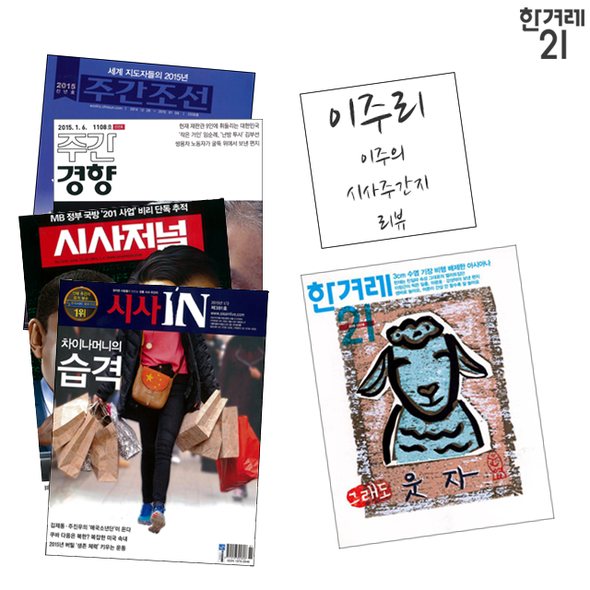 시사주간지의 표지들도 신년호답게 2015년의 새 출발을 알리고 있습니다. 그러나 제각각 말하려고 하는 바는 다른 듯 보이네요. 시사주간지의 표지가 이처럼 다양하기도 쉽지 않을 것 같다는 생각도 해봅니다. 이번 주 시사주간의 표지를 키워드로 간단히 정리해본다면, ‘1955년생·중국·해커·문재인·싱가포르’라고 말할 수 있겠습니다. 무슨 얘기냐고요? ‘이주리’를 자세히 살펴보시면, 알 수 있습니다! 그밖에 올 한해 주목해야 할 다양한 읽을거리들도 풍성하니, 이번 주 신년호 시사주간지를 놓치지 마세요~.