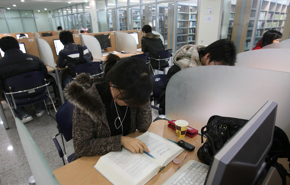 대학 도서관 열람실에서 공부 중인 학생들. 한겨레 이종근 기자