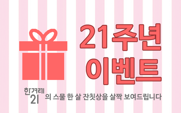 1994년 3월3일 창간한 〈한겨레21〉이 창간21주년 을 맞아 독자 여러분들과 함께 하는 다양한 이벤트를 마련했습니다 . ‘21’의 ‘21’살 잔치에 여러분을 초대합니다!