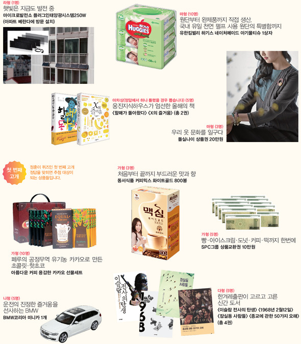 4. 고개별로 경품을 고르면 됩니다. 세 번째 고개 경품을 고르는 분은 일단 첫 번째와 두 번째 고개의 정답도 모두 맞혀야 합니다. 참고로 남들이 신청하지 않을 듯한 경품에 응모할 경우 당첨 확률이 높아집니다.