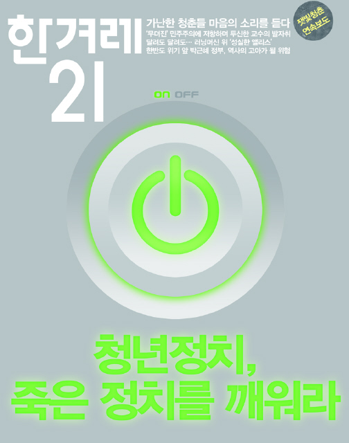청년에게 너무 많은 짐을 주는 것 아닌가 하는 생각이 드는 요즘이다. <한겨레21>의 앞선 기사들이 전하듯이 청년들은 이 사회에 뿌리내리기 위해 발버둥을 치고 있지만, 현실은 너무 척박하다. 그런 부담에 힘겨워하는 청년들에게 ‘정치’까지 잘해달라 응원하기도 미안할 지경이다. 그럼에도 희망을 걸 사람은 청년뿐이다. 죽은 정치를 깨우고, 일상을 바꿔내는 그 누군가가 우리에게 필요하다. 우리 정치에 심폐소생술을 할 수 있는 ‘청년’을 여전히 기다려본다.