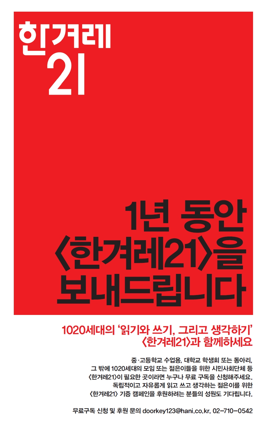 페이스북 0트위터 0공유네이버블로그카카오스토리카카오톡 공유하기스크랩프린트크게 작게 무료구독 신청 및 후원 문의 doorkey123@hani.co.kr, 02-710-0542 *관련 기사 링크 ▶만리재에서 ‘매체 기부’ 한겨레와 함께 걸어주세요섬세하게 세상을 보고 용기있게 기사를 쓰겠습니다.후원하기후원제 소개좋은 언론을 향한 동행,한겨레를 후원해 주세요한겨레는 독자의 신뢰를 바탕으로 취재하고 보도합니다.후원하기후원제 소개당신의 가치를 후원으로 얹어주세요평화를 갈망하는 마음, 평등을 지향하는 마음,환경을 염려하는 마음...후원하기후원제 소개����한겨레21 인기기사제 1586호20251103차례보기지난호보기낱권구입구독신청한겨레 인기기사