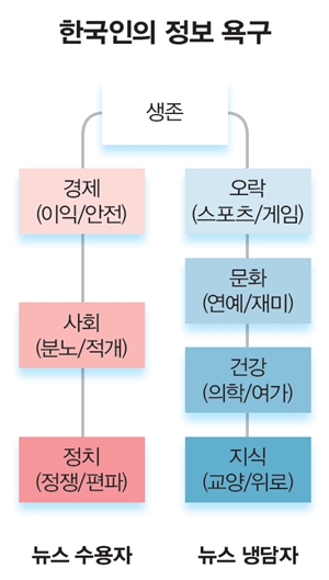 몸뚱아리가 아니라 머리와 가슴에 무엇인가 장착하려고 교양·지식을 찾는 사람들이 없지는 않다. 그들은 ‘좋은 뉴스’의 잠재적 소비자이지만, 기성 언론에 대한 강력한 비판자이기도 하다. 결국 오락-문화-건강-지식으로 이어지는 ‘뉴스 냉담자’들은 뉴스를 소비하지 않고도 잘 살아간다(고 스스로 생각한다). 그들의 삶은 뉴스의 영토 바깥에 있다.