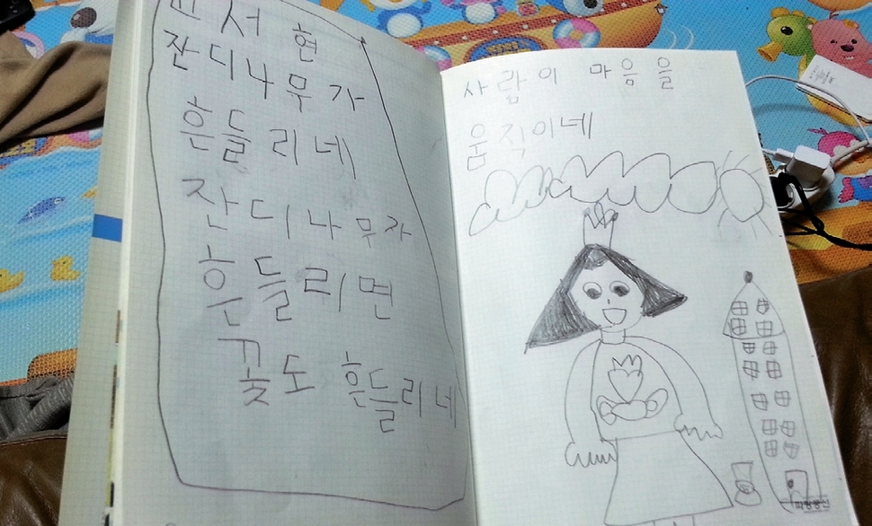 김효열 독자는 7살 딸의 시를 보내며 이런 말을 전했다. “처음 한글을 배워 시를 쓰신 할머니 말씀대로 마음 가는 대로 솔직하게 쓰면 시가 되는 것 같다. 아이가 자신의 마음을 표현하며 적어놓은 게 예뻐서 보낸다.”