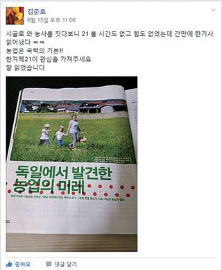 시골로 와 농사를 짓다보니 <한겨레21> 볼 시간도 없고 힘도 없었는데 오랜만에 기사(제1116호 ‘독일에서 농촌의 미래를 발견하다’) 하나 읽어냈습니다. 농업은 국력의 기본! <한겨레21>이 관심 가져주세요. 잘 읽었습니다.
