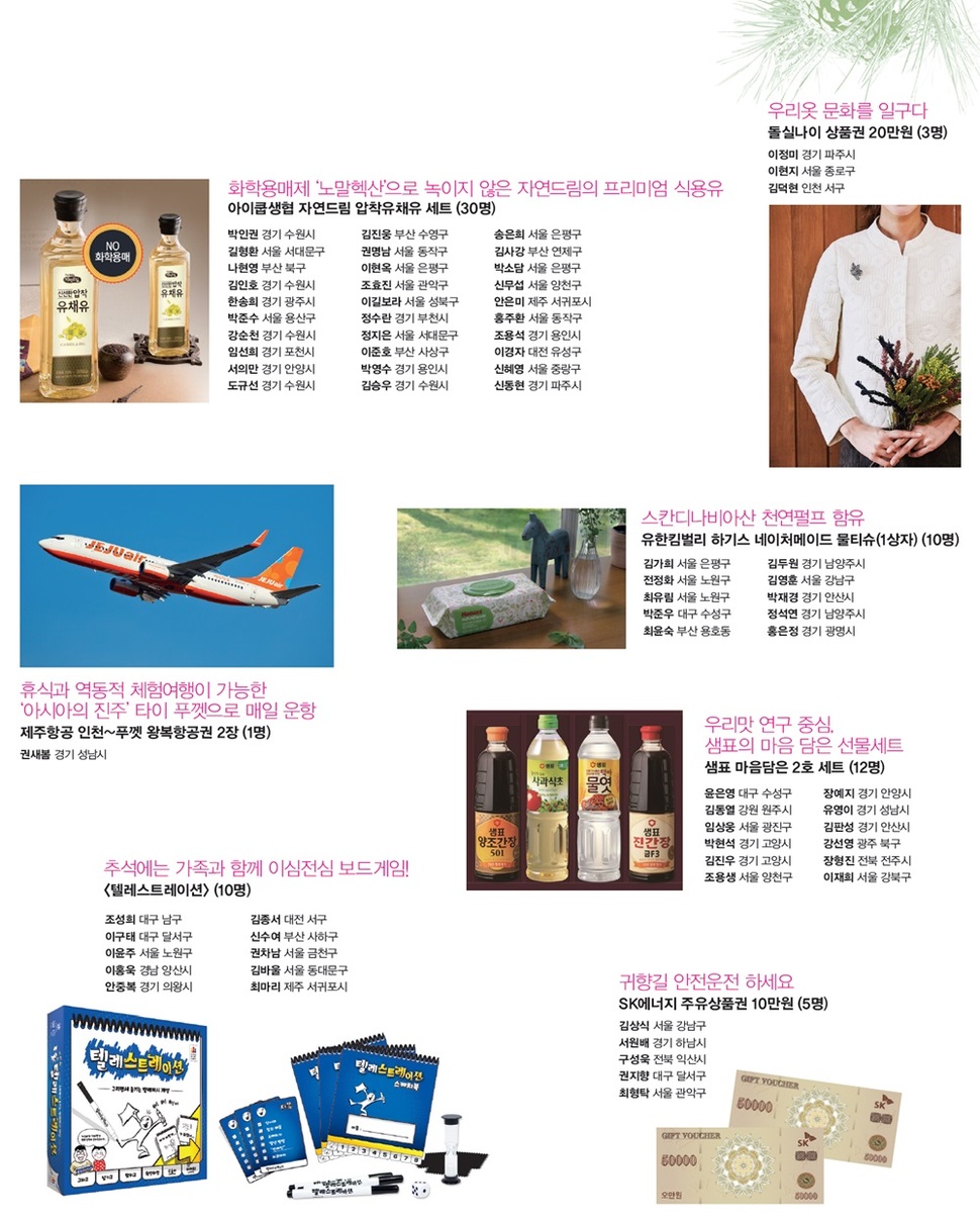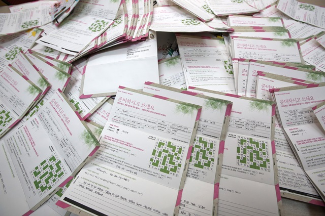 지난 설 퀴즈큰잔치에 이어 한가위에도 문제를 쉽게 내려고 노력했습니다. 가뜩이나 풀어야 할 난제가 많은 세상, 퀴즈에서라도 좀 넉넉함을 느끼셨으면 하는 마음이었습니다. 다른 고민도 있었습니다. 세상 모든 것이 디지털화하는 때에 손으로 꾹꾹 눌러쓴 엽서를 보내는 이들이 얼마나 될지 마음 졸였습니다. 매일매일 도착하는 엽서들을 확인하며 엽서가 적게 오는 날에는 괜히 울적한 마음이 들기도 했습니다. 오가는 사람들이 “이번에는 엽서가 많이 안 왔네요” 할 때마다 ‘망함’에 대한 우려인가 싶어 떨렸습니다.