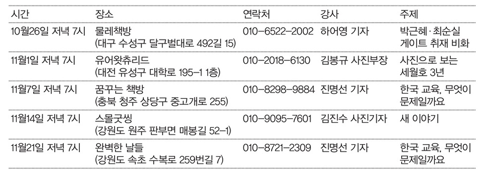 21 뉴스 동네서점과 함께하는 ‘찾아가는 <한겨레21>, 독자와의 소심한 간담회’의 일정이 다소 변경되었습니다. 참여를 원하시는 독자님들께선 일정을 확인해주세요.