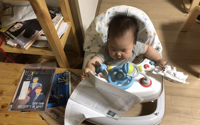 세상에 할 일이 더 많이 보인다. 유모차를 끌고 마트를 가는데, 막 깔아놓은 보도블록이 엉망이었다. 그간 장애인들은 어떻게 다녔을지 생각했다. 교통 약자의 불편에 눈뜬 거다. 미세먼지가 심해 집에 있어야 했던 봄에는 환경문제가 내 문제가 됐다. 아기가 여자라고 벌써 주변에서 편견 가득한 언행이 보이는데, 여기에도 문제를 제기해야 한다. 앞으로 공부하고 목소리 낼 게 더 많아졌다. <한겨레21>이 다뤄줬으면 하는 아이템이 있다면. 노동·환경·교육 등의 문제에 목소리를 내는 ‘정치하는 엄마들’ 모임에 주목했으면 좋겠다. 임신 7개월 때 창립 모임에 갔다. ‘<82년생 김지영>의 현실에 가만히 있지 않겠다, 엄마들이 임신과 출산으로 현실에서 사라지거나 혐오의 대상이 되지 않고, 주체로 굳건히 서겠다’는 마음이 느껴졌다. 당당히 기자회견하고 공부하고 토론하는 엄마들이다. 그 모임이 특히 매력적인 점은. 아이들이 모임에서 자유로이 돌아다니며 놀 수 있다. 제 짝꿍도 이번에 은유를 돌보며 같이 참여했다. 모유 수유도 해가며. 아이와 엄마가 사회에서 배제되지 않는 분위기다. <한겨레21>이 육아에 도움 된 적 있나. 은유가 좋아하는 장난감이다. 특히 포장비닐을 찢거나 얇은 종이를 구길 때 나는 ‘사각사각’ 소리를 몹시 좋아한다. 육아에 큰 도움이 되고 있다. 변지민 기자 dr@hani.co.kr