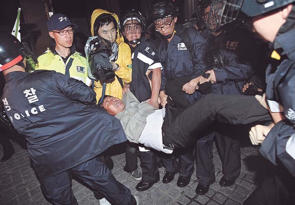 그렇게 잘생기고 말 잘 듣고 공부 잘하고 예의 바른 ‘엄친아’(엄마 친구 아들)도 지키기 힘든 법이 있다. 국민감정법도, 국가보안법도 아니고 집시법(집회 및 시위에 관한 법률). 행여나 허가된 길을 벗어나 ‘선’을 넘어선 아니되고, 목소리를 높여서 일정한 ‘데시벨’을 넘어서도 아니되며, 해가 떨어지면 자정 무렵의 신데렐라처럼 드레스 아니 피켓을 주섬주섬 집어들고 서둘러 집으로 가야 한다. 아니면 48시간 경찰서 연행, 적어도 벌금 폭탄을 맞는단 사실을 지난여름에 확인하지 않았던가. 이제는 석양의 신데렐라로 돌변하지 않아도 될까. 서울중앙지법 박재영 판사는 10월9일 야간 옥외집회를 금지한 집시법에 대해 “집회와 시위의 자유를 제약한다”며 위헌법률심판을 제청했다. 이제 엄친아를 완벽한 엄친아로 만드는 일, 헌법재판관들의 손에 달렸다.