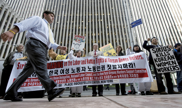 기륭전자 비정규직 노동자들이 미 뉴욕에서 원정투쟁을 벌이고 있다. 연합