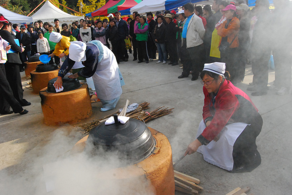 이천 시민이라면 이천쌀에 대한 이런저런 이야기를 한나절 풀 수 있다. 아침 설봉산을 다녀와서 ‘가마솥 이천명 이천원’의 밥을 먹고 있는 아주머니들도 그랬다. ‘가마솥 이천명 이천원’은 2천 명분의 밥을 가마솥에 지어 2천원씩에 파는 것이다. 이천시가 오천시, 칠천시가 아니라 기쁜, 기분 좋은 가격이다. 그 많은 밥을 짓는 가마솥은 세계 최대. 밥이 다 되면 기중기가 뚜껑을 들어올린다. 최미자씨 등 동네산악회 회원들은 밥에 얼갈이와 고추장을 비벼먹으면서 눈앞에서 진행되는 ‘밥짓기 명인’ 선발대회(이천쌀밥 명인전)를 지켜보고 있다. 한복을 곱게 입은 선수 4명이 가마솥을 얹은 부뚜막 앞에서 쌀과 장작을 정돈하고 있다. 밥짓기 명인 선발대회는 이천쌀문화축제의 ‘백미’다. 10월23일부터 시작된 나흘간의 일정에서 하루에 한 명의 일일명인을 뽑고, 10월26일 마지막 날 오후 일일명인 4명 중 최고 명인을 가린다. 오후 3시30분 긴장된 분위기 속에 일일명인 4명이 나란히 섰다. 등에 쪼이는 햇볕은 따뜻하고, 거칠고 부드럽게 바람이 파도를 타는 것이 밥 냄새를 널리 이르게 할 날씨다.