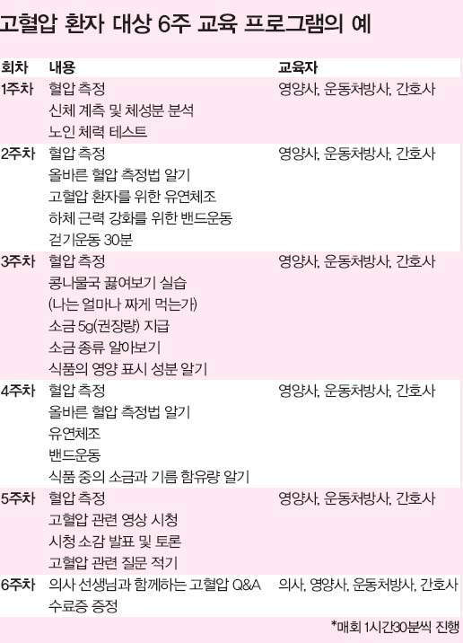 고혈압 환자 대상 6주 교육 프로그램의 예