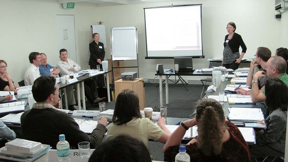 지난 10월14일 오스트레일리아 약사회 뉴사우스웨일스지부 교육실에 20명의 약사가 모여앉아 교육을 받고 있다. 수업은 주로 토론식으로 진행됐다.