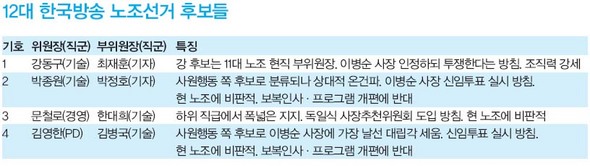 12대 한국방송 노조선거 후보들 (※ 이미지를 클릭하면 크게 볼 수 있습니다)