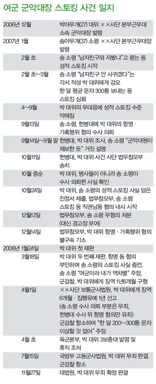 여군 군악대장 스토킹 사건 일지(※이미지를 클릭하면 크게 볼 수 있습니다)