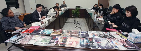 12월1일 한겨레21인권위원들이 ‘인권 OTL-30개의 시선’이 실린 <한겨레21>을 펼쳐놓은 채 날로 후퇴하는 인권 현실에 대해 논의하고 있다. 위원들은 언론이든 운동단체든 대중에게 더 정서적으로 다가가는 게 필요하다고 입을 모았다. <한겨레21> 류우종 기자