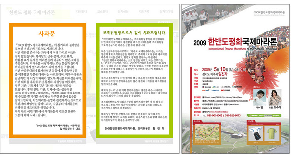 마라톤 코스가 공지된 지난 3월28일, 한 참가자는 이런 글을 홈페이지에 올렸다. “1회 대회니 별다른 기대 없이 지켜보다가 코스와 프로그램을 알고 나니 마구 기다려지더군요. 상금도 두둑하고, 먹을거리도 빵빵하다 하니…^^* 저는 하프, 아내와 딸아이는 5km를 뛸 예정입니다.” 기자는 그가 살았는지 확인하지 못했다.