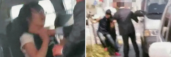 지난 4월8일, 불법 취업한 중국인 여성이 단속 승합차에 끌려가 출입국관리소 공무원으로부터 목울대를 가격당하고 있다. 이 모습이 지역 일간지 영상카메라에 잡혔다. 중도일보