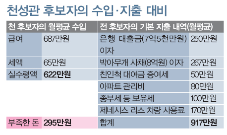 천성관 후보자의 수입·지출 대비