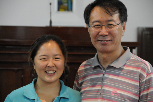 지난 12월16일 가석방 뒤 머물러야 하는 온두라스 한인교회에서 지난 12월16일 한지수씨 부녀가 활짝 웃고 있다. 한지수 제공