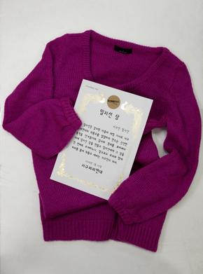 ‘서울 갈빗집과 인천 감자탕집’ 편을 읽고 상을 준다는 내용이었다. 다른 꾸러미는 꽤 컸는데 뜯어보니 꽃분홍색 니트 티셔츠가 들어 있었다. ‘메이드 인 코리아’ 공정무역 상품인 듯했다.