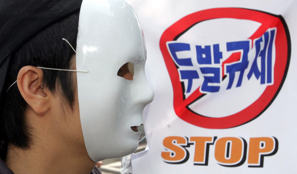 학생인권조례가 비난받는 사회에 아이들의 미래는 없다. 두발자유를 요구하는 청소년들의 시위. 한겨레 박종식 기자