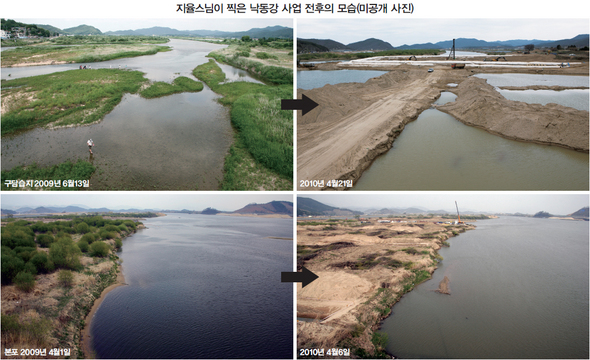 지율스님이 찍은 낙동강 사업 전후의 모습(미공개 사진) (※클릭하시면 더 크게 보실 수 있습니다.)