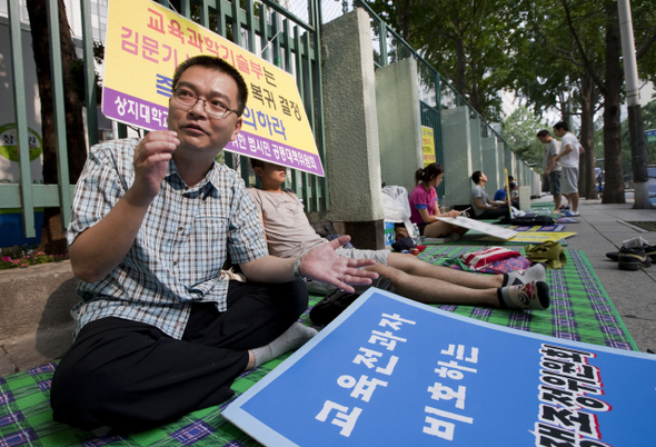 ‘김문기 대학’은 아내가 이사, 사위가 실장 ‘광주 청문회’로 온 나라가 시끄러울 때였다. 총학생회가 광주 망월동 묘역 참배를 위해 관광버스를 불렀다. 계약까지 마쳤는데 돌연 버스회사가 차를 보내지 않았다. 학교 당국의 압력 때문이었다. 이런 일이 벌어지는 이유는 무엇인가. 고민에 빠진 신입생 진광장은 “영문 모르고 영문학과에 들어온” 자신의 대학 생활이 심상치 않을 것임을 직감했다. “자기 대학 이사장이 누군지 아는 학생은 별로 없잖아요. 대학은 총장 중심으로 돌아가거든요. 그런데 상지대에선 총장 말고 이사장 이름만 회자됐어요. 김문기와 그 친인척들이 대학 전체를 장악하고 있었거든요.” 당시 상지학원 이사장 김문기씨는 아내(이사), 사위(총장 비서실장), 매제(전문대학장), 8촌(교무과장·한방병원 총무과장), 외사촌(주임·교직원), 문중 인사(회계과장·서무과장) 등을 두루 핵심 요직에 앉혔다. 서울 인사동에서 가구업체를 운영하며 큰돈을 번 김씨는 1973년 12월 상지대와 인연을 맺었다. 운영난을 겪던 원주대학이 폐교되자, 박정희 정권은 지역 출신의 사업가 김씨를 관선이사로 파견했다. 임시 이사장이 된 그는 1974년 기존의 ‘청암학원’을 ‘상지학원’으로 개명했다. ‘상지학원, 상지대학교 진실규명 및 설립자 학교 찾아주기 운동본부’(www.sangjiun.net)라는 홈페이지는 그의 치적을 알리는 내용으로 가득하다. 주변의 요청을 받아들여 어려움에 빠진 지역 교육기관을 인수했고, 이후 종합대학으로 승격시키는 등 학교 창립과 발전에 지대한 역할을 했다는 게 주요 내용이다. 상지대는 ‘김문기의 대학’이므로, 그에게 돌려줘야 한다는 뜻이다. “뭐 이런 대학이 다 있나 싶었죠.” 진씨는 ‘김문기의 대학’ 시절을 잊을 수 없다. 캠퍼스엔 ‘성냥갑 건물’뿐이었다. 성냥갑처럼 생긴 똑같은 건물 5개가 늘어서 있었다. 설계비를 줄이려고 같은 도면의 건물 여러 개를 한번에 지어올렸다 해서, 지금까지도 ‘김문기 대학’의 유물처럼 여겨진다. 고등학교에도 없는 재래식 화장실이 ‘김문기의 대학’엔 있었다. 여러 지방대 가운데 유독 상지대에서 학생운동이 발달한 이유가 바로 그 캠퍼스에 있다고 진씨는 생각한다. “처음엔 열악한 학교 시설에 정서적 반감을 느끼다, 그 이유가 족벌 운영 구조에 있다는 것을 알게 되면서 대학과 사회문제에 눈을 뜨는 거죠.” 황량한 캠퍼스 가운데도 그가 마음에 담아둔 곳이 있다. 본관 옆 오르막길이다. 학생들은 그곳을 ‘해방뜰’이라 불렀다. 모든 집회가 해방뜰에서 열렸다. 적어도 1천 명 이상, 많으면 3천여 명이 교내 집회에 참가했다. 요구사항은 항상 비슷했다. ‘김문기 족벌 경영 반대’였다. “강의실 의자를 들어내 수업을 거부하고, 대신 본관에 몰려가 점거 농성하고…. 학기의 시작과 끝이 ‘족벌재단 퇴진’이었어요.” 그 무렵 학생운동권에 기승을 부리던 ‘NL-PD’ 정파 다툼조차 상지대에선 힘을 잃었다. “사회문제를 바라보는 차이가 있긴 했지만, 김문기에 대해선 아무 차이가 없었거든요.” 옛 생각이 나는 듯 진씨는 살짝 웃었다. “차이라고 해봐야, 이사장실 점거 뒤에 사무실 집기를 밖으로 뺄 거냐 말 거냐를 두고 논쟁한 정도?” 그것을 ‘정상적인 대학 생활’이라고 부를 수는 없을 것이다. 그러나 대학 역시 정상적이지 않았다. 1993년 4월, 검찰은 김문기 당시 이사장을 구속했다. 현직 국회의원이던 그는 공금횡령과 부정입학 등의 혐의로 기소됐고, 이듬해인 3월 대법원은 1년6개월의 실형을 선고했다. 공금횡령에 대해선 무죄, 부정입학은 유죄를 인정했다. 이에 대해 김씨는 “좌파들이 부패 비리로 나를 몰아세워 쫓아냈지만, 1995년 사면·복권으로 그 혐의를 모두 벗었다”고 주장한다. 사면·복권이 과거의 죄를 사하는 것은 아니고, 대법원까지 항소했음에도 부정입학 혐의를 인정받았으며, 여당 3선 의원의 유력 정치인에게 이례적으로 실형까지 선고한 일은 특별히 언급하지 않는다. 김문기 이후 민주대학 17년 다만 진씨가 보기에도 상지대 구성원들이 김씨를 ‘쫓아내려 했던’ 것은 맞다. 진씨가 총학생회장을 맡았던 1991년, 열악한 학내 식당 문제를 해결하려고 학생회 자치 식당을 만든 적이 있다. “학내 식당에선 1년 내내 카레밥과 자장밥이 나왔어요. 하는 수 없이 학생들은 모두 시내로 나가 밥을 먹었죠.” 그러나 학교 당국은 학생들이 마련한 식당을 포클레인을 동원해 부숴버렸다. ‘상지대 용공조작 사건’도 유명하다. 1986년 강사 채용에 1천만원을 요구한 비리가 밝혀져 김씨가 궁지에 몰렸다. 그해 10월14일 밤 본관 앞에 “김일성 수령님” “가자, 북의 낙원으로” 등의 내용을 담은 유인물이 뿌려졌다. 훗날 학생과 직원의 양심선언과 경찰 조사 결과, 불온 유인물이 학교 쪽 교직원들에 의해 제작·살포됐음이 드러났다. 학교가 학생들을 ‘빨갱이’로 엮으려 했던 것이다. 김씨는 이런 일에 직접 개입한 적이 없다는 입장이다. 그는 이사장으로 취임한 1978년 이후 10여 년 동안 단 한 차례도 이사회를 열지 않았다. 교수·교직원·학생 등은 물론 다른 이사진까지 배제하고 사실상 혼자